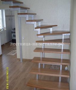 Существует несколько вариаций, но наибольшую надежность гарантирует вид модуля с упором на несущий столб, который представляет собой металлическую трубу в диаметре от 5 см, закрепленную в межэтажном пространстве. К этому основанию веером фиксируются ступени. Как дополнительный гарант в стену крепится горизонтальный поручень, чтобы избежать малейшей деформации конструкции.