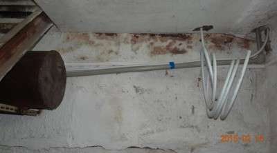 Вода с перепускной канистры поступает в подвал. На фото видно трубу притока воды пластик Ф-32мм и откачки металлопласт Ф-16мм. Труба скрученная предназначена для сжатого воздуха ( в планах подключить компрессор).