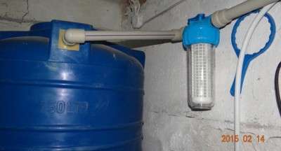По трубе притока вода поступает на фильтр грубой очистки после чего направляется в емкость через поплавковый клапан.