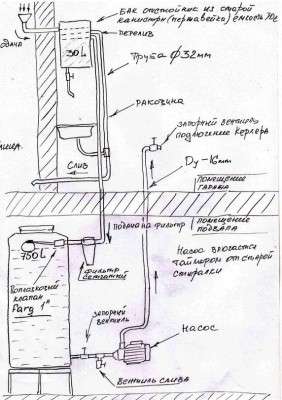 в дальнейшем планируется емкость, насосную станцию и водонагреватель поместить в погреб второго гаража. (который еще предстоит выкопать )